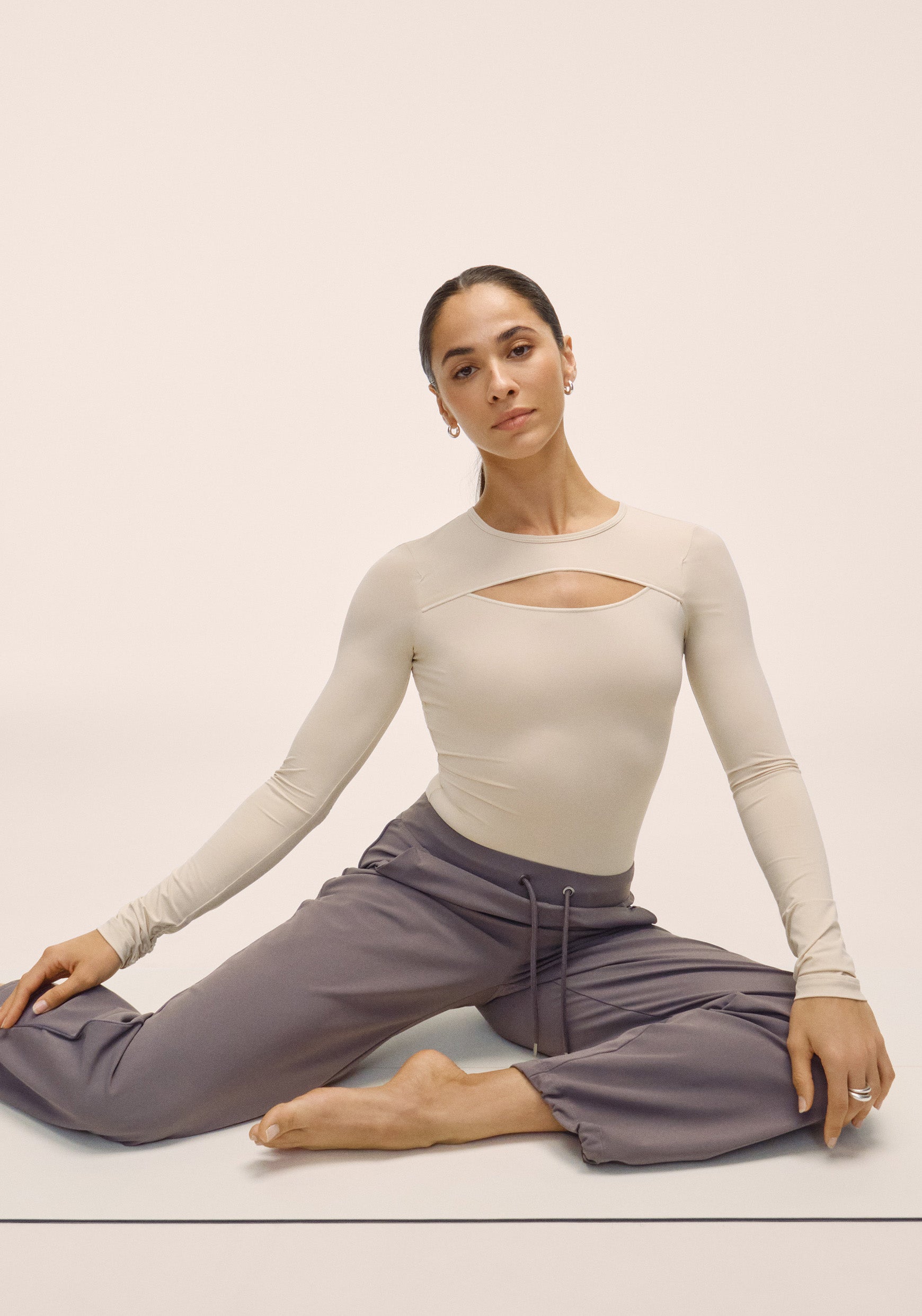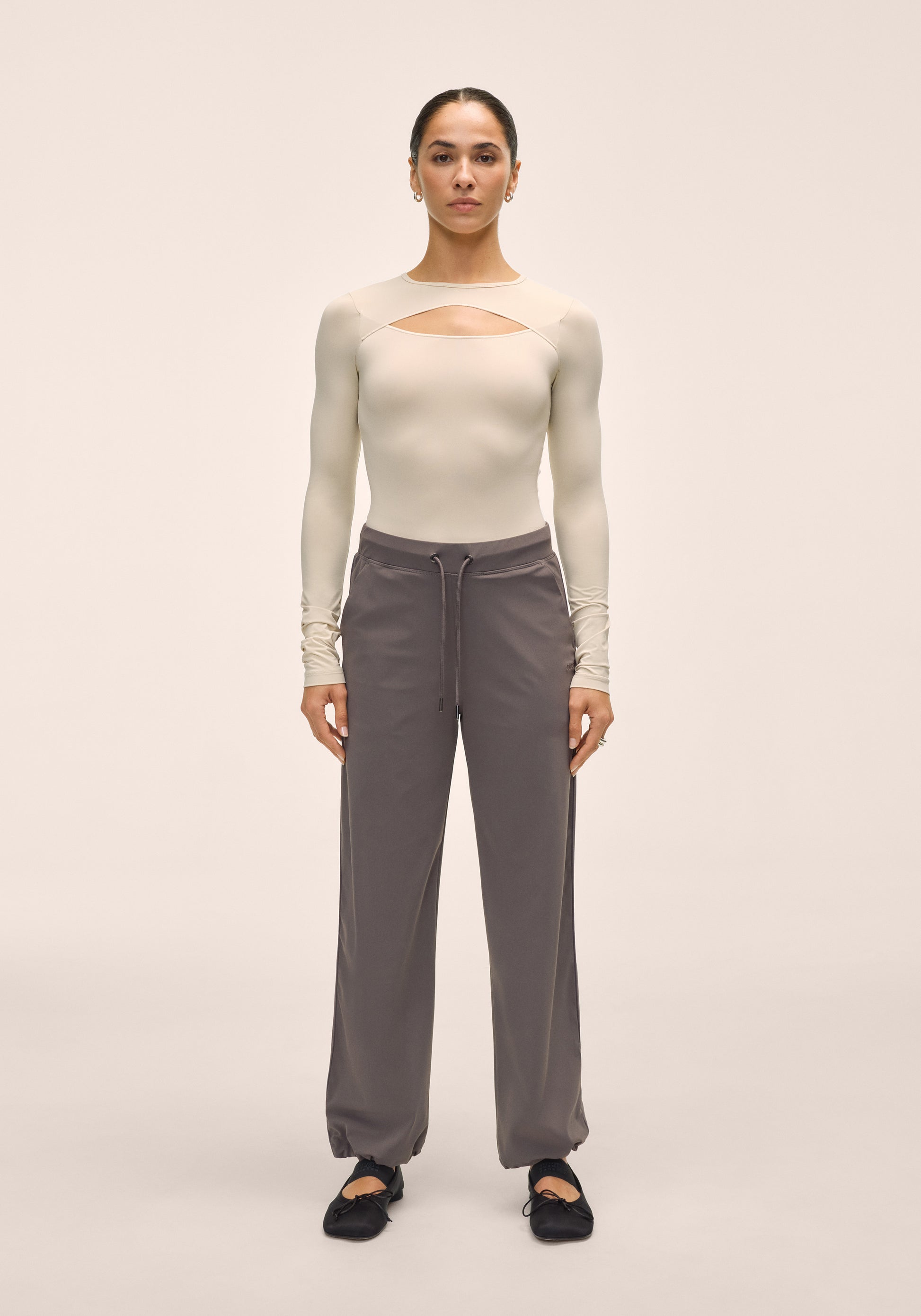 מכנסיים עשויים פוליאמיד ואלסטן לגמישות. עוצבו לשיעורי ריקוד ואימונים בסטודיו. שרוך במותן, חפתים מתכווננים במכפלת ובכיסים.